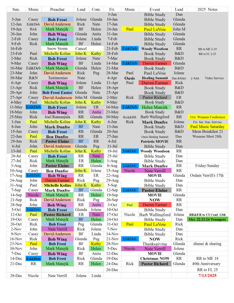 Ministry Schedule